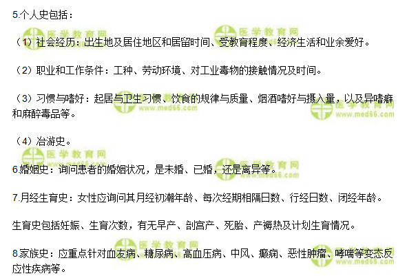 以上为“诊断学基础“问诊的内容”—中医执业医师考点”全部内容,由医学教育网小编整理,更多信息请随时关注医学教育网。