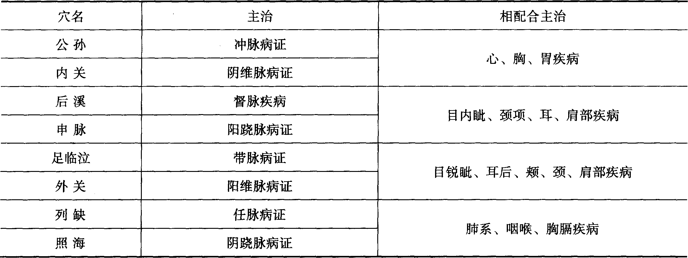 特定穴:八脉交会穴配伍及主治病证