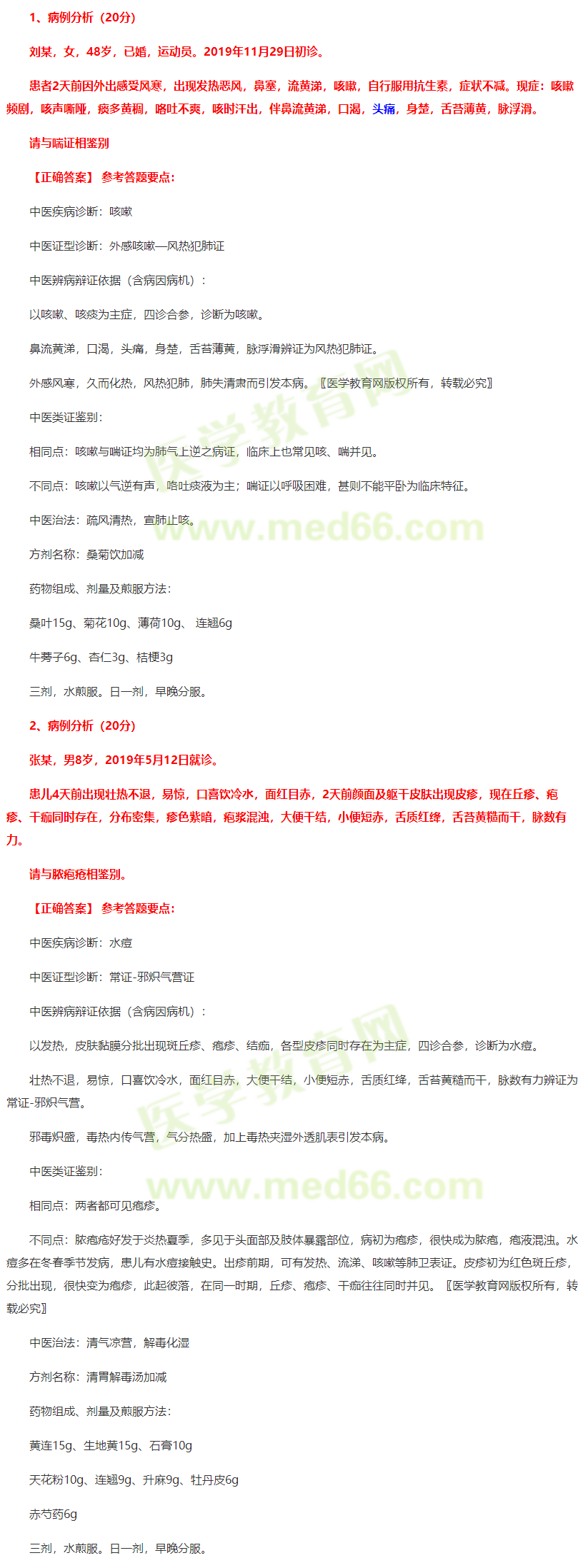 4.中医类证鉴别(助理不考)(3分)