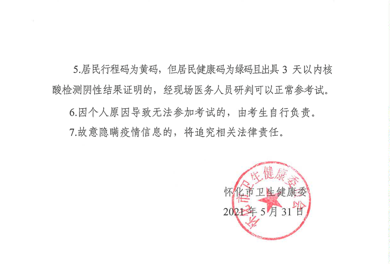 “怀化考点2021年中医执业医师实践技能考试疫情防控考生须知”的内容很多人都想知道,医学教育网小编为此整理了“怀化考点2021年中医执业医师实践技能考试疫情防控考生须知”,详情如下: