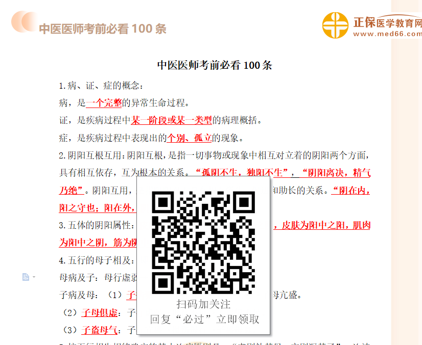 上文“【考前100条】2021年中医执业医师考试综合笔试考前100条免费领~”由医学教育网整理,更多医考信息、政策新闻、备考干货请关注医学教育网。