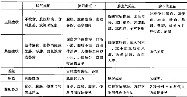 (一)脾气虚证、脾阳虚证、脾虚气陷证、脾不统血证