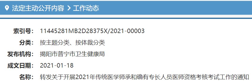 根据揭阳市卫生健康局《关于开展2021年传统医学师承和确有专长人员医师资格考核考试工作的通知》(揭市卫函〔2021〕23号)精神,现将我市相关事项告知如下: