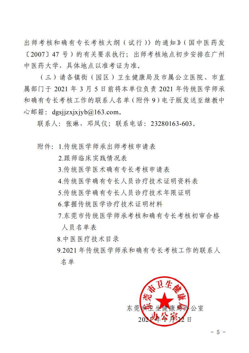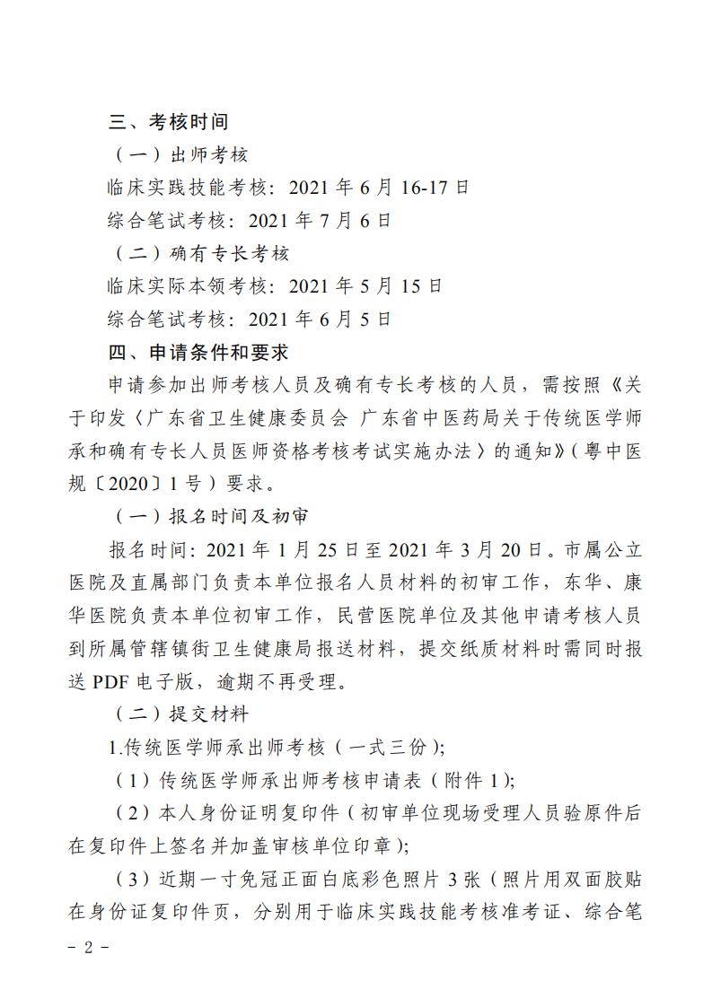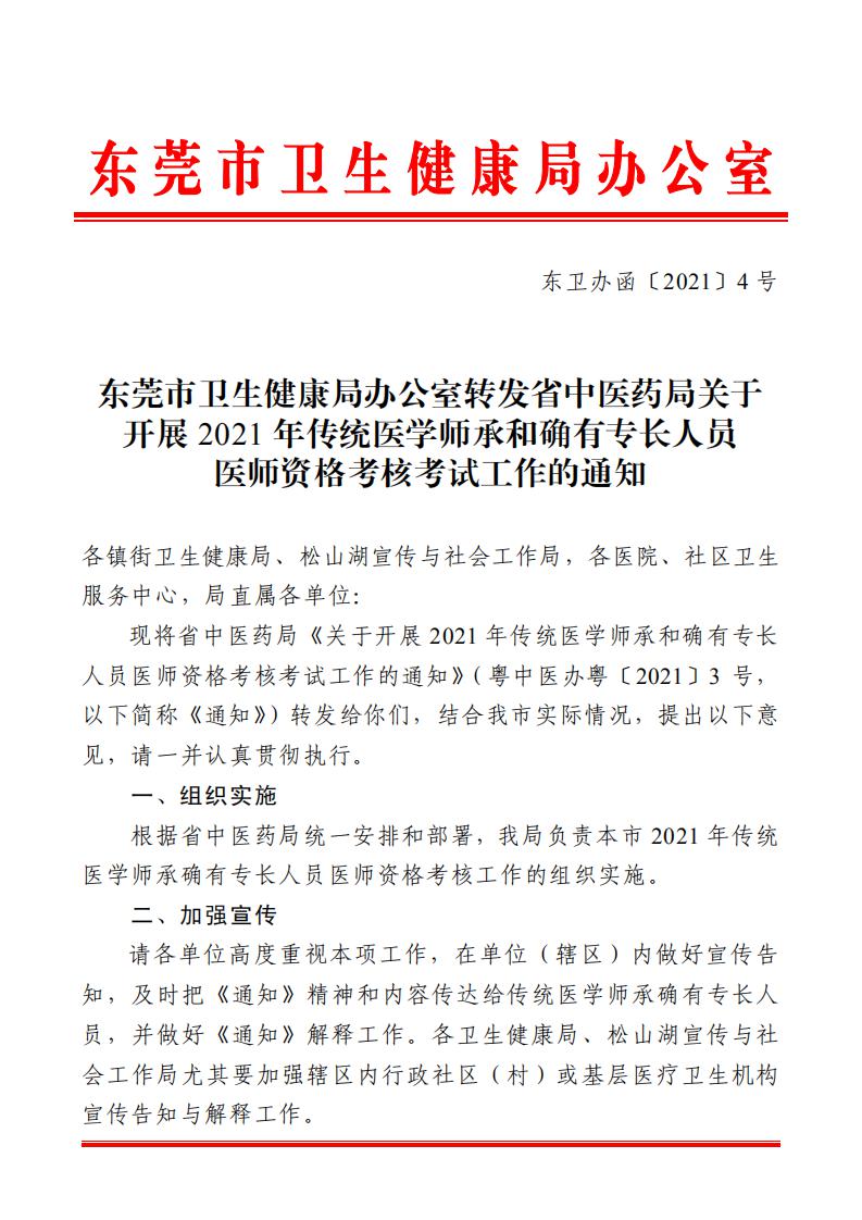 东莞市关于开展2021年传统医学师承和确有专长人员医师资格考核考试工作的通知