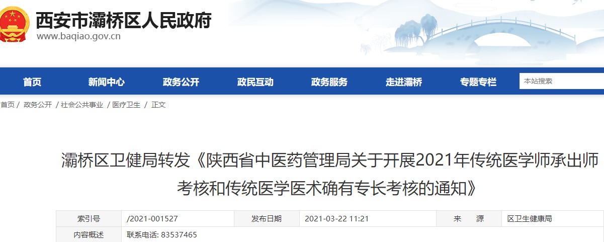 陕西省2021年传统医学师承出师考核和传统医学医术确有专长考核通知