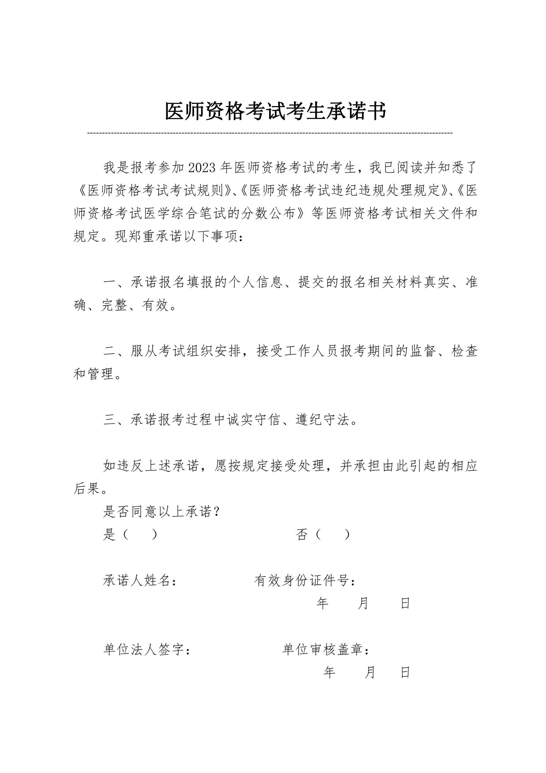 以上为“四川考区遂宁市2023年中医执业医师资格考试考生承诺书下载”全部内容,由医学教育网小编整理,更多信息请随时关注医学教育网。