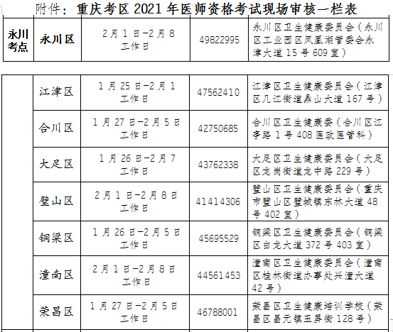 通知原文:重庆考区2021年医师资格考试报名及现场审核安排有关事宜重要提示