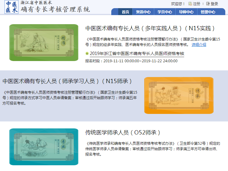 浙江省中医医术确有专长考核管理系统:http://yszc.zcmu.edu.cn/index.jsp