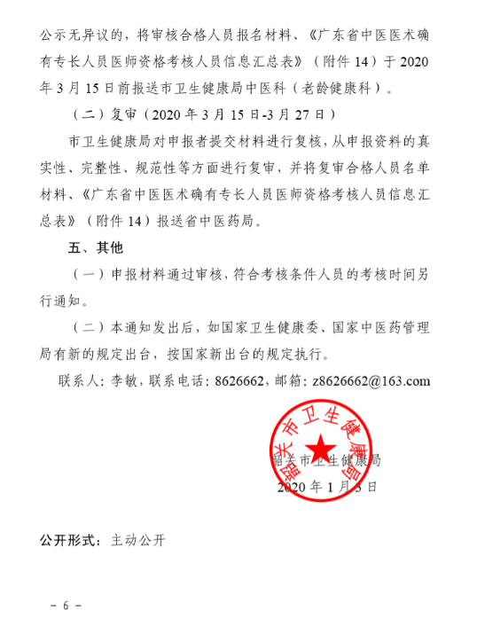 韶关市关于开展 2019 年度广东省中医医术 确有专长人员医师资格考核报名工作的通知