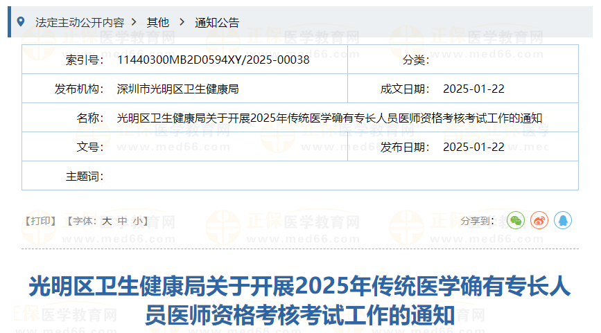 光明区卫生健康局关于开展2025年传统医学确有专长人员医师资格考核考试工作的通知