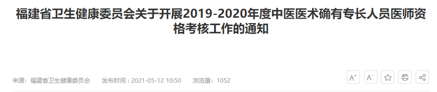 福建省卫生健康委员会关于开展2019-2020年度中医医术确有专长人员医师资格考核工作的通知,医学教育网老师为大家整理总结如下,希望可以帮助到各位: