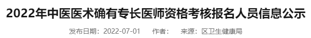 根据《省卫生健康委关于开展2022年中医医术确有专长人员医师资格考核工作的通知》(鄂卫函〔2022〕67号)规定,经考生个人网上报名,区卫生健康行政部门现场初审后,共有14名考生符合申报条件(名单附后),现予以公示,公示时间自2022年7月1日至7月6日。