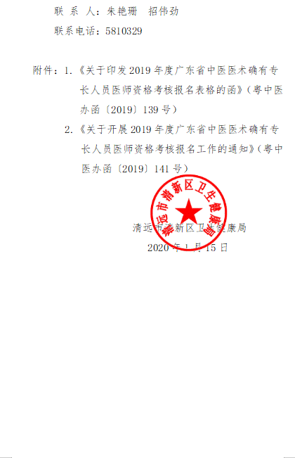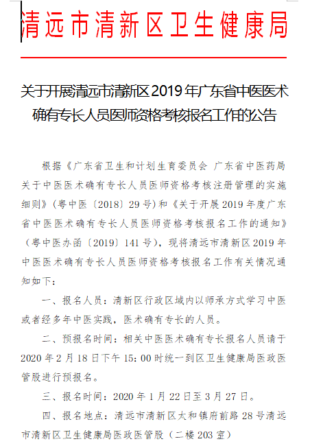 2019年广东清远清新区中医医术确有专长人员医师资格考核工作的通知