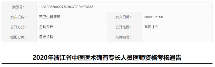 2020年浙江省中医医术确有专长人员医师资格考核报名工作的通知