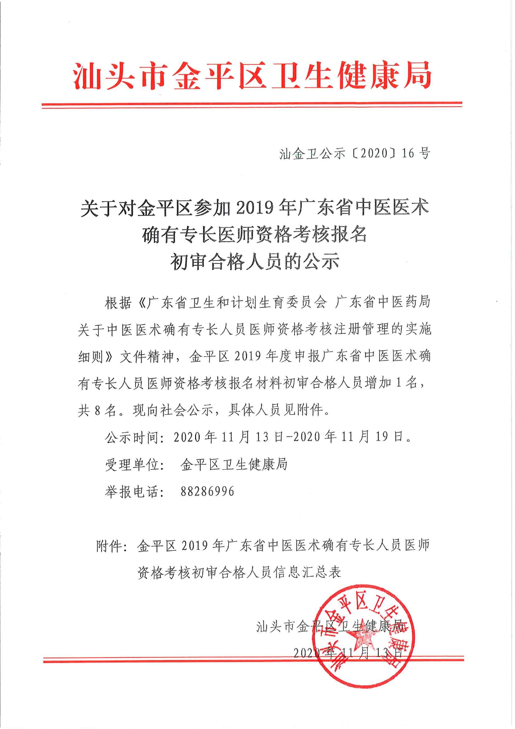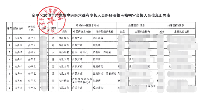 关于“汕头市金平区2019年中医医术确有专长人员医师资格考核报名初审人员公示”的问题很多考生都很感兴趣,医学教育网小编整理如下内容,预祝考生考试顺利。