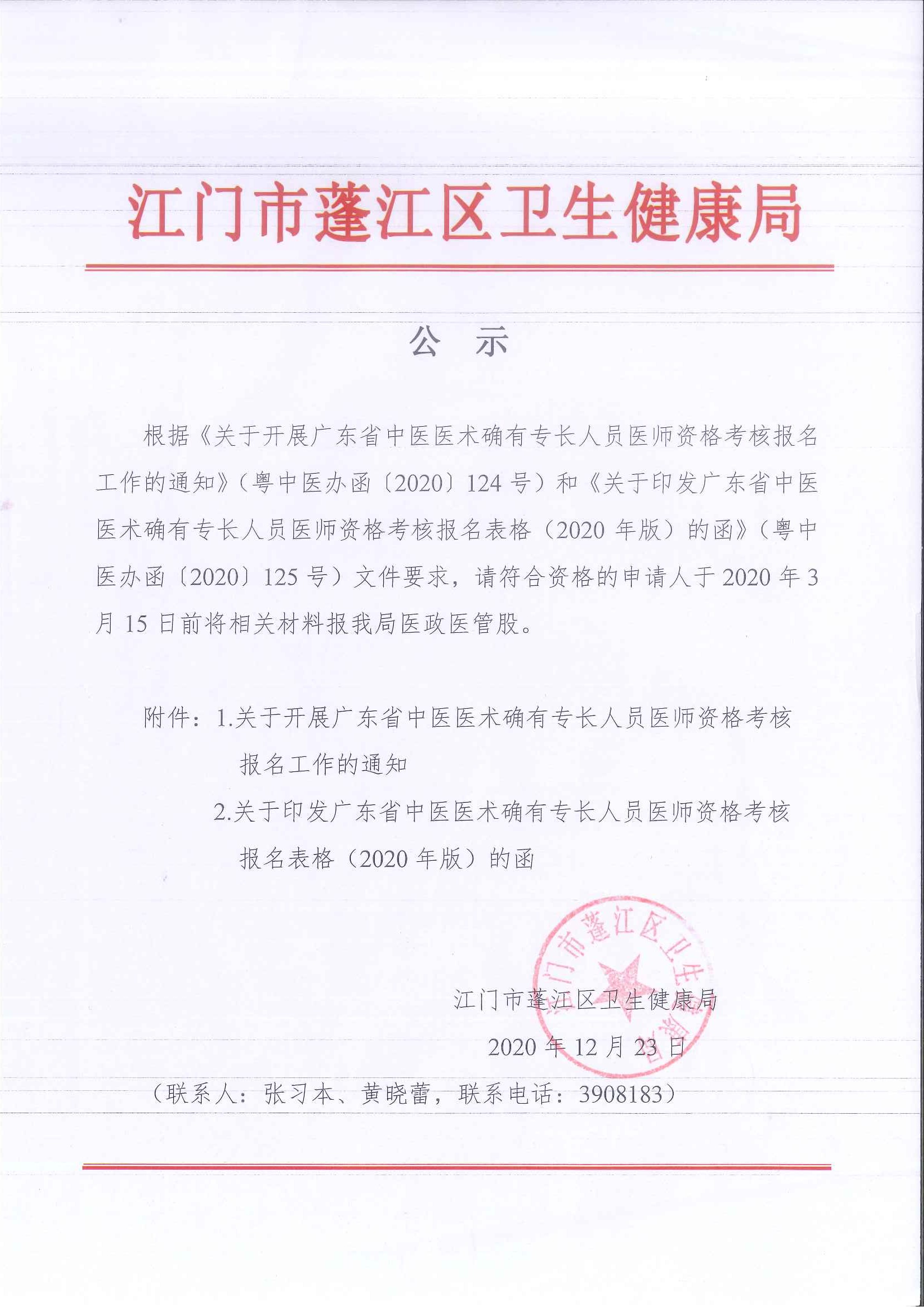 关于开展2020年广东省中医医术确有专长人员医师资格考核报名工作的通知