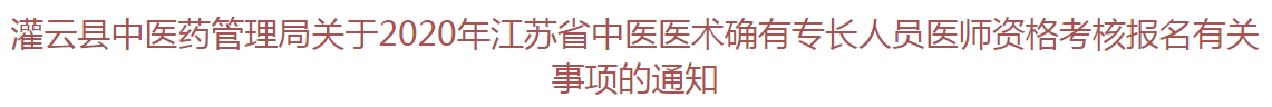 关于“连云港灌云县2020年中医医术确有专长人员医师资格考核报名工作的通知”的内容,医学教育网小编得知很多考生比较关心,为此小编搜集整理了相关官方文件,详情如下:
