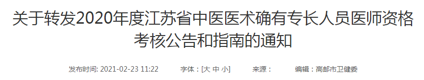 2020年度江苏省中医医术确有专长人员医师资格考核高邮市报名工作开始,具体通知内容医学教育网小编搜集整理如下: