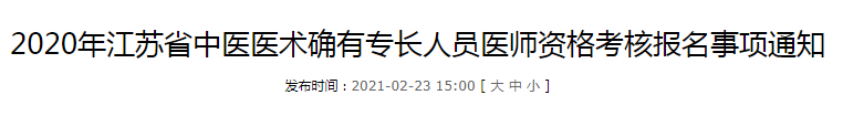 2020年江苏省中医医术确有专长人员医师资格考核公告