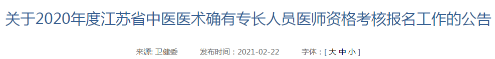 2020年江苏省中医医术确有专长人员医师资格考核公告