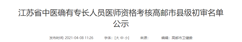 “江苏省高邮市2020年中医医术确有专长人员医师资格考核初审名单”很多人都想知道,医学教育网小编整理下文,希望可以帮助到大家。