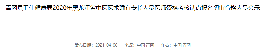 绥化市青冈县2020年中医医术确有专长人员医师资格考核报名初审名单很多考生都想知道,医学教育网小编搜集整理如下:
