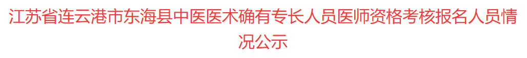 关于“连云港市东海县2020年中医医术确有专长人员医师资格考核报名人员情况公示”的问题很多考生都很感兴趣,医学教育网小编整理如下内容,预祝考生考试顺利。