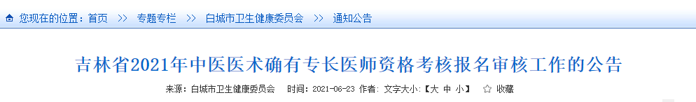 白城卫健委发布了2021年中医医术确有专长人员医师资格考核报名审核工作的公告,具体通知内容医学教育网小编搜集整理如下:
