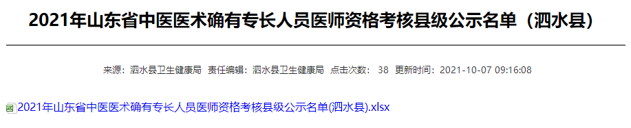 关于“2021年山东省中医医术确有专长人员医师资格考核泗水县初审名单”的内容,医学教育网小编得知很多考生比较关心,为此小编搜集整理了相关官方文件,详情如下: