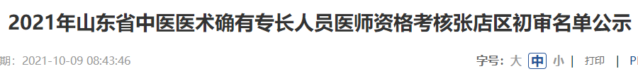 根据山东省卫生健康委员《关于做好2021年山东省中医医术确有专长人员医师资格考核报名相关工作的通知》和淄博市卫生健康委《关于转发<山东省卫生健康委员会关于做好2021年山东省中医医术确有专长人员医师资格考核报名相关工作的通知>的通知》的要求,现对报考中医医术确有专长初审通过人员进行公示(详见附表),如对公示人员名单有异议,公示期内以书面、电话或发邮件形式向张店区卫生健康局反映,过期不予受理,反映问题时应提供真实姓名和联系电话,公示期为5个工作日,自2021年10月9日起至2021年10月13日止。