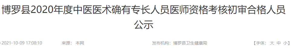 博罗县发布了2020年广东省中医医术确有专长人员医师资格考核报名初审合格人员,具体通知内容医学教育网小编搜集整理如下: