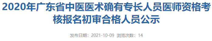 根据《广东省卫生和计划生育委员会 广东省中医药局关于中医医术确有专长人员医师资格考核注册管理的实施细则》(粤中医〔2018〕29号)、广东省中医药局《关于开展广东省中医医术确有专长人员医师资格考核报名工作的通知》(粤中医办函〔2020〕124号)要求,经过恩平市卫生健康局初审,现按规定对初审合格人员情况进行公示(详见附件),公示期为2021年10月9日-2021年10月14日(5个工作日)。