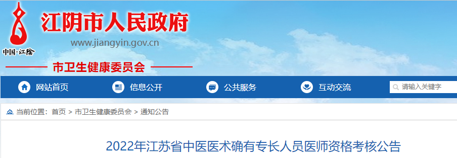 江苏省江阴市发布了2022年中医医术确有专长人员医师资格考核报名公告,医学教育网小编搜集整理如下: