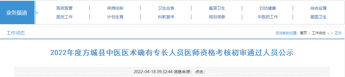 2022年度方城县中医医术确有专长人员医师资格考核初审通过人员公示,医学教育网编辑为您搜集整理了相关文件,请考生及时查看!