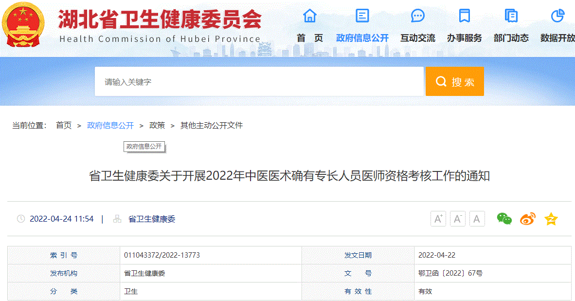湖北省关于开展2022年中医医术确有专长人员医师资格考核工作的通知,医学教育网编辑为您搜集整理了相关文件,请考生及时查看!