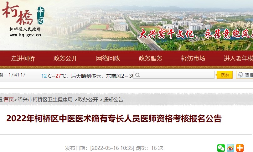 根据国家中医药管理局有关工作要求和《浙江省卫生计生委关于印发浙江省中医医术确有专长人员医师资格考核注册管理实施细则的通知》(浙卫发〔2018〕34号)《浙江省卫生健康委员会关于修改<浙江省中医医术确有专长人员医师资格考核注册管理实施细则>的决定》(浙卫发〔2019〕39号)有关规定,现将2022年柯桥区中医医术确有专长人员医师资格考核报名工作有关事项公告如下: