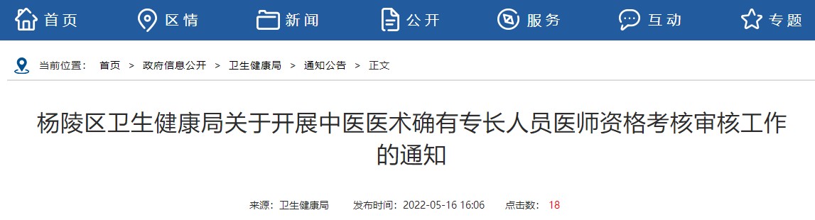 杨陵区卫生健康局关于开展中医医术确有专长人员医师资格考核审核工作的通知,医学教育网编辑为您搜集整理了相关文件,请考生及时查看!
