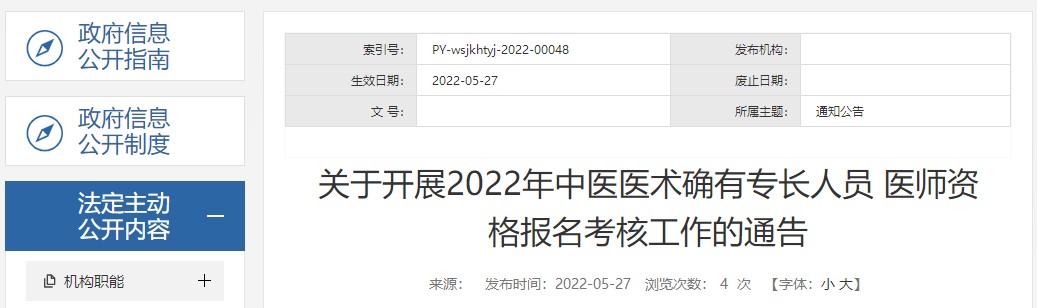 (三)中医医术确有专长人员医师资格报名考核工作具体事宜,详见《山西省卫生健康委员会办公室关于开展2022年中医医术确有专长人员医师资格报名考核工作的通知》(晋卫办中医药函〔2022〕13号)