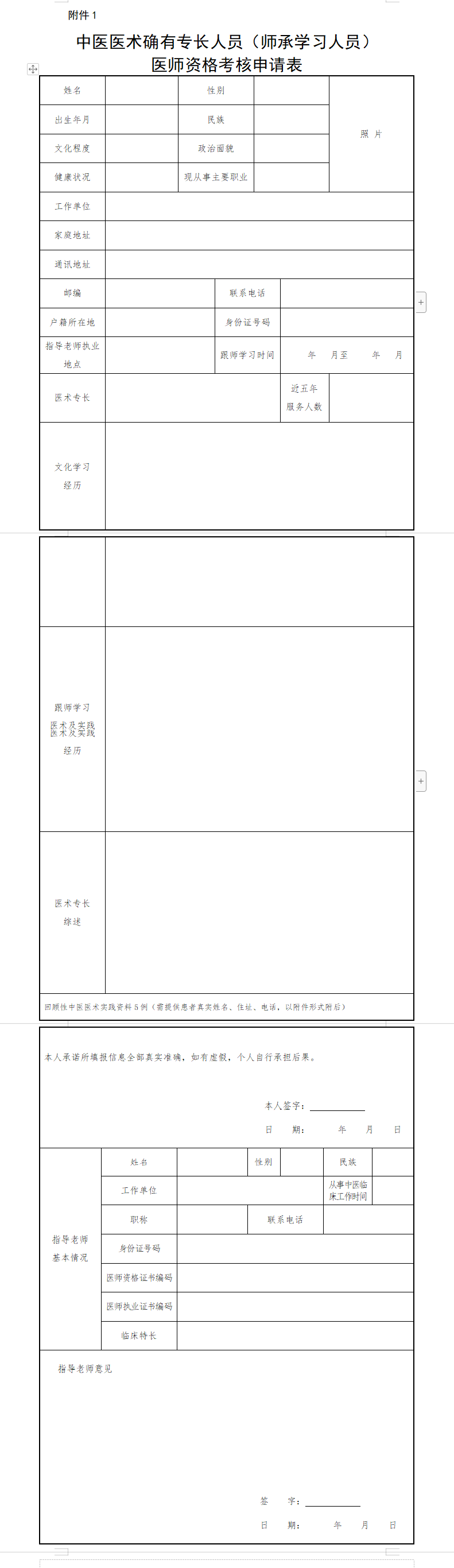 附件下载: 《中医医术确有专长人员(师承学习人员)医师资格考核申请表》