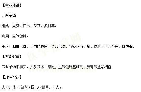 关于“中医医术确有专长考核方剂歌诀考点:四君子汤(补益剂)”相关内容,相信参加中医医师确有专长考核的考生都想知道, 为帮助大家了解,在此医学教育网小编为大家整理如下内容: