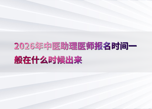 2026年中医助理医师考试报名时间预计在1月至2月期间启动。