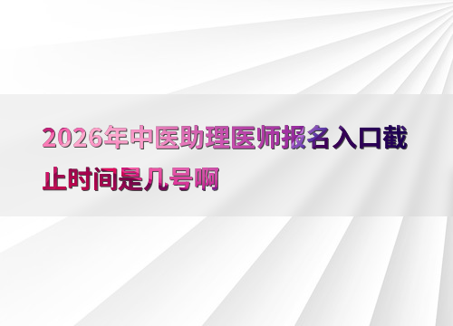 2026年中医助理医师考试报名预计在1月至2月进行,具体入口开放时间为2026年1月上旬至2月中旬。