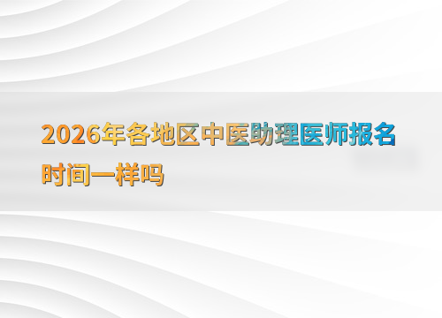 2026年中医助理医师考试报名时间预计在1—2月,全国统一安排,但具体日期由各考区根据实际情况微调。