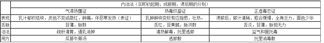 乳痈的外治法:分初起,成脓,溃后三种处理