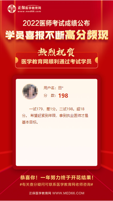“一试179,差1分。二试198。超18分。希望赶紧到年限,拿到执业医师才是基本目标。 "