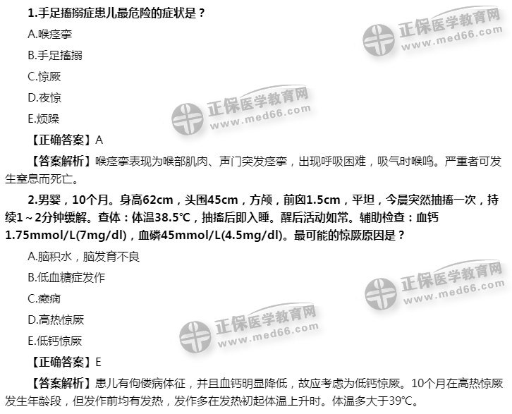 维生素D缺乏性手足搐搦症练习题: