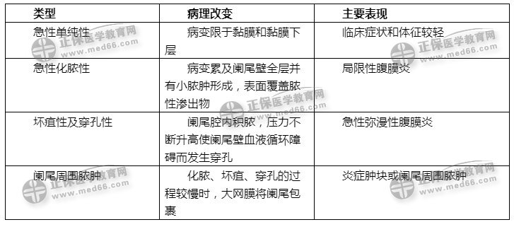 1.阑尾炎的病理分型: