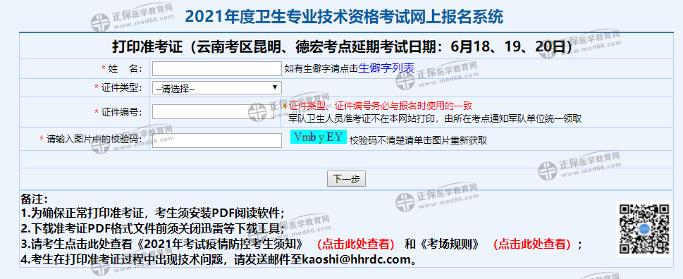 云南德宏州2021主管护师准考证打印入口(6.11-6.20):