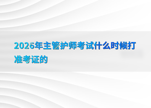 2026年主管护师准考证打印时间为4月1日至4月26日,考生需登录考生管理平台下载并保存准考证,作为参加考试的凭证。
