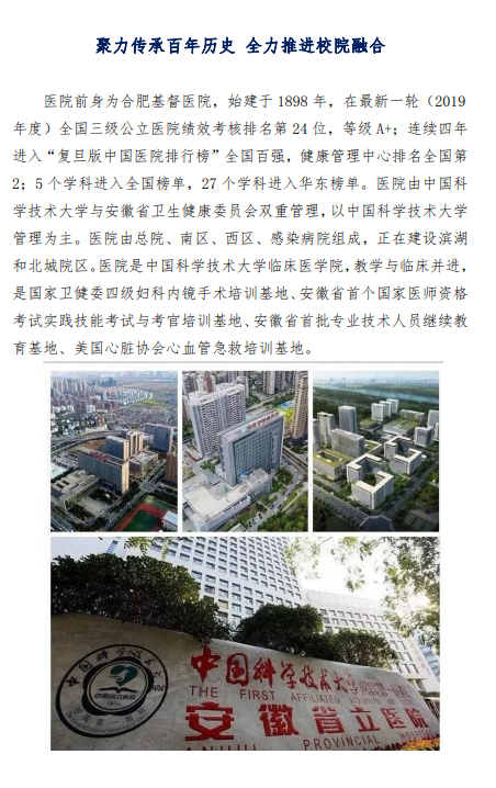 相关附件:中国科学技术大学附属第一医院(安徽省立医院)2022 年住院医师规范化培训招生简章